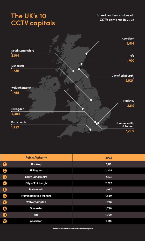 However, they have a long way to go to catch the UK’s CCTV capitals, with 17 local authorities controlling over 1,000 cameras each.