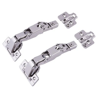 Overlay hinges allow the cabinet door to rest on top of the cabinet frame, partially or fully covering it when closed. They’re commonly used in both framed and frameless cabinets in modern kitchens for a sleek and discreet look. Overlay hinges are available in full and half overlay styles to accommodate various door positions.